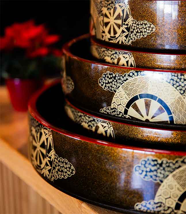 Gegrilltes Hühner- und Rindfleisch in La Lot Blätter eingewickelt, dazu servieren wir Ihnen traditionsweise Reisnudeln und Fischsauce.